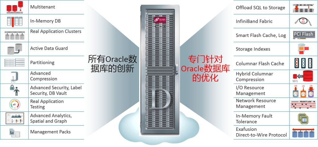 俄罗斯专享会294数码登云数据库一体机顺利获得集成设计为Oracle数据库带来了卓越的性能、极佳的成本效益和极高的可用性。登云数据库一体机采用支持云的现代化架构,内含可横向扩展的高性能数据库服务器、可横向扩展的智能存储服务器(配有先进的PCIe闪存)、使用持久性内存的先进存储缓存以及连接所有服务器和存储的云级RDMA over Converged Ethernet (RoCE) 内部结构。登云数据库一体机采用独有的算法和协议,在存储、计算和网络中实现了数据库智能,因此,与其他平台相比,能以更低的成本给予更高的性能和容量。它适用于所有类型的现代数据库负载,包括联机事务处理(OLTP)、数据仓库(DW)、内存分析、物联网(IoT)、财务、游戏、合规性数据管理以及高效整合的混合负载。登云数据库一体机部署简单、快速,能为您极其重要的数据库给予全面的支持和保护。